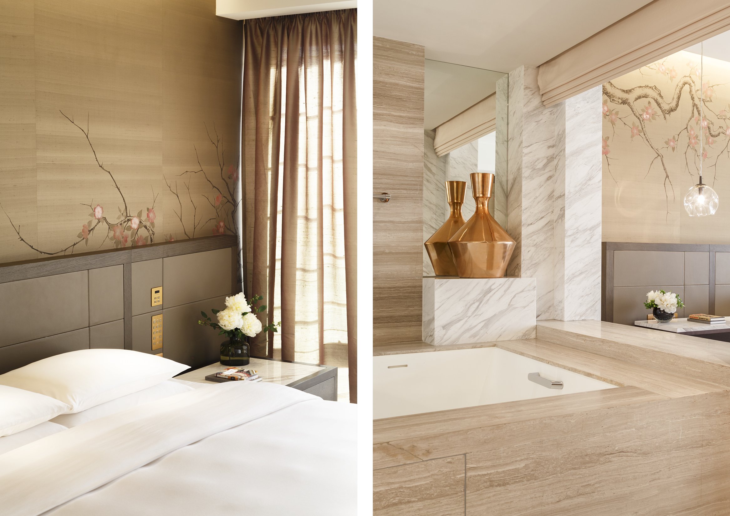 The new interiors blend the traditional and modern, Eastern and Western in an elegant residential style and the new spaces maximise the celebrated views of Hong Kong. The hotel’s new guestrooms feel spacious and light, contrasting with richly hued guest-floor corridors. The Teppanroom offers a sophisticated and discreet private-dining experience, with a rich and moody interior and wide-ranging stylistic influences layered over a Japanese base.